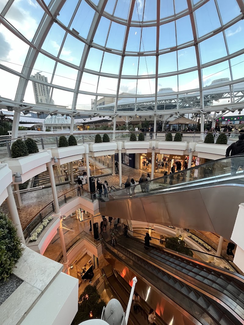 Contemporary, multilevel retail complex with international brands, trendy cafes & a movie theater.