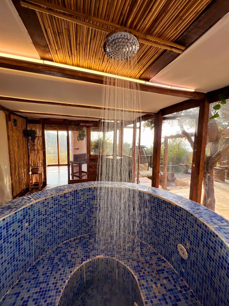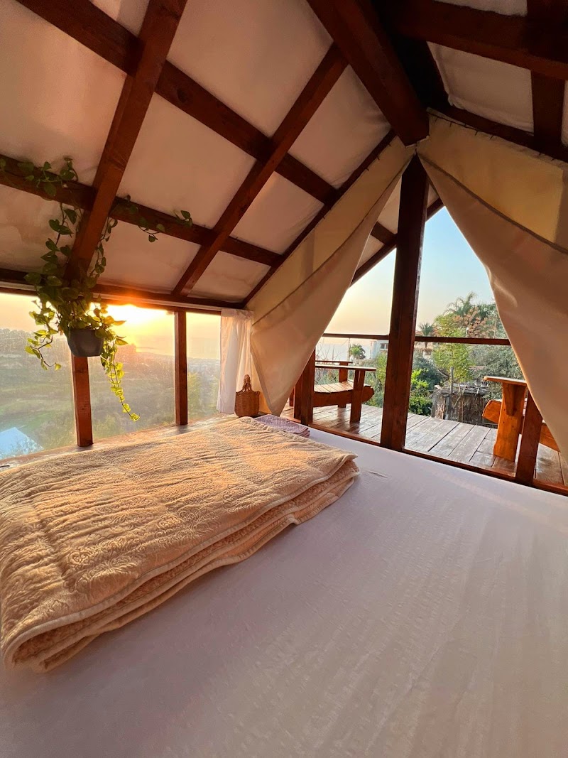 خيام ريفية دائمة يضم معظمها أحواض جاكوزي في منتجع مريح يطلّ على البحر