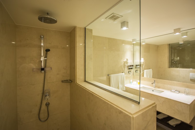 غرف بسيطة فيها شرفات في فندق مريح يضم بارًا في قاعة الانتظار ومطعمًا