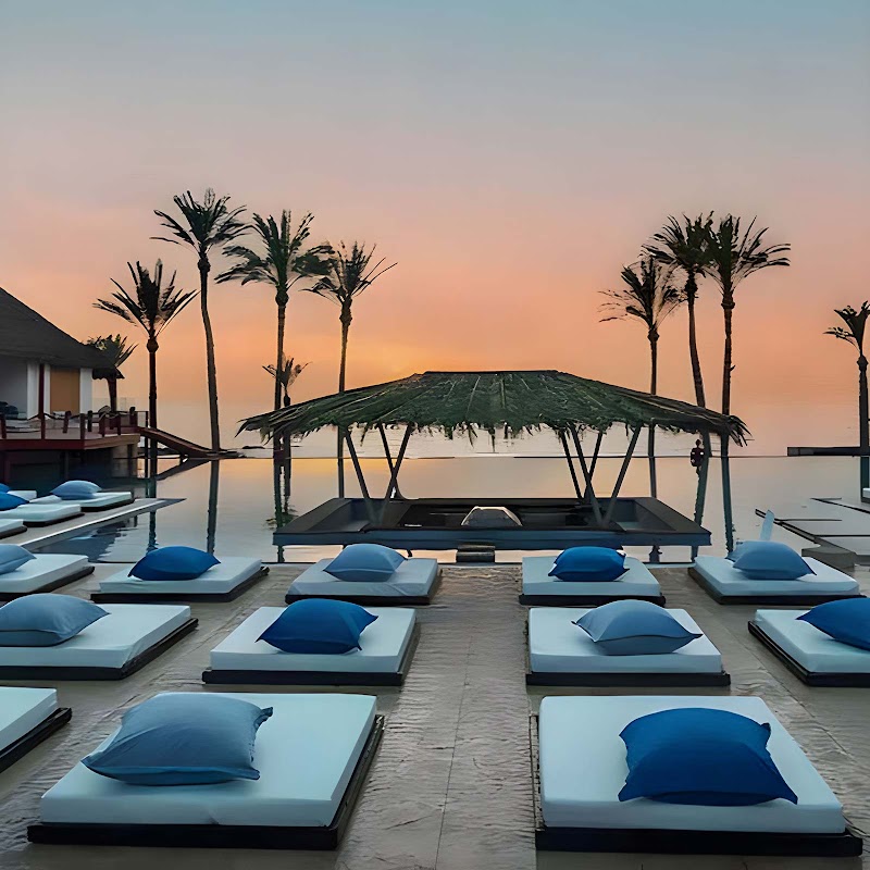 Rustic-chic bungalows, some with butler service, in a luxe beachside hotel offering upscale dining.